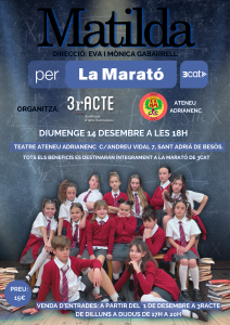 Aquest desembre vivim un d’aquells moments que ens recorden per què estimem tant el teatre: la capacitat d’unir-nos, emocionar-nos i sobretot ajudar. El diumenge 14 de desembre a les 18 h, els nostres joves artistes tornaran a interpretar Matilda, el musical al Teatre Ateneu Adrianenc, en una funció especialment dedicada a La Marató de TV3.